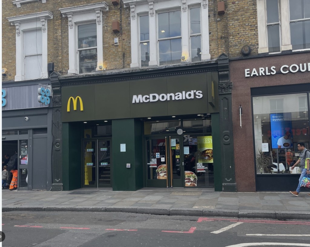 After walking from Gloucester Road to Earl’s Court, I entered McDonald’s. It sits there, unchanged, except for the modern computers now used to order and pay for food.
